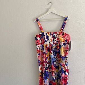 London Times Floral Print Colorful Tiered Smocked Waist Maxi Dress