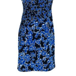 London Times Floral Printed Diagonal Sheath Dress Sleeveless Blue Size 0