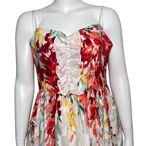 London Times Floral Sundress Womens Size 14 Spaghetti Straps Ruffle Lined