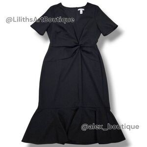 London Times Flounce Twist Midi Dress(C049)-Size 12 for Women