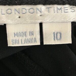 London Times Front Twist Deep V-Neck Black Midi Dress