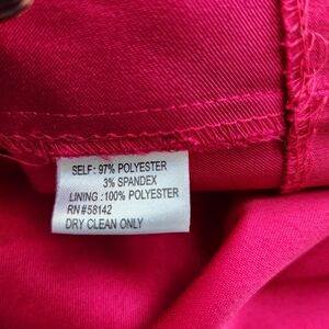 Menswear inspired a tuxedo cumberbun defined waist sash detail. Chic jewel tone pink modest length dress with cap sleeves. Rear concealed zipper. 3% elastic for comfort and a little stretch. Perfect for any occasion.