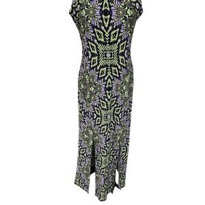 London Times Ikat purple and green maxi sheath dress size 6 Small