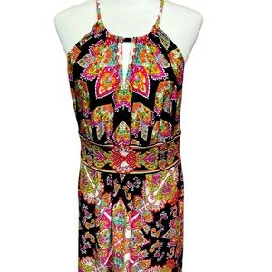 London Times Key Hole Colorful Paisley Maxi Dress