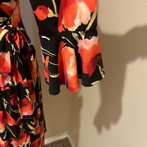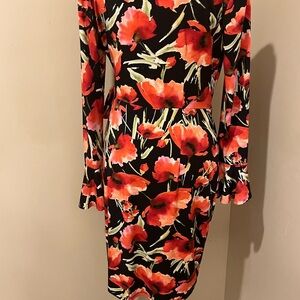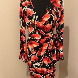 This universally flattering wrap dress exclusively for Le Tote by London Times features a bold poppy print and a small bell sleeve.