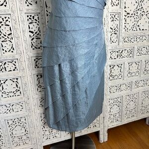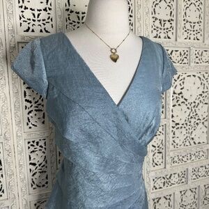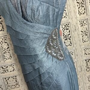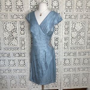 London Times Light Blue Pleated Shutter Embellished V Neck Formal Cocktail Dress Sz 10