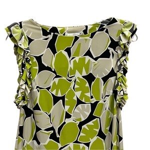 London Times Lime Green Leaves Ruffled Shift Dress, Size 4