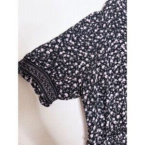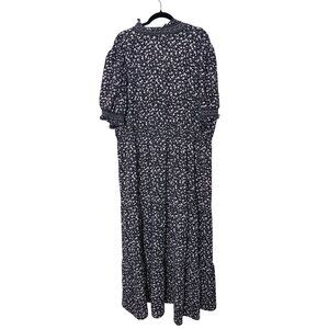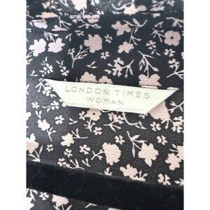 London Times Maxi Dress Woman Black Floral Size 18 SmockedTiered Short Sleeves