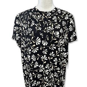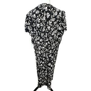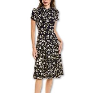 London Times Midi Dress Geometric Pattern Back Zip Tie Neck A-Line Black 20 NWT