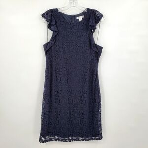 London Times Navy Blue Floral Lace Mini Dress, Size 8.