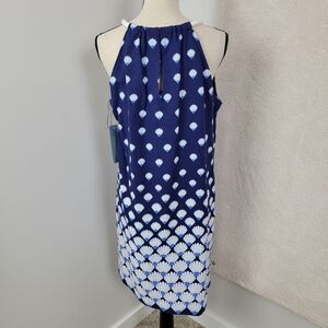 London Times Navy/White Tropical Ombré Shell Print Linen Blend Mini Dress Sz 8