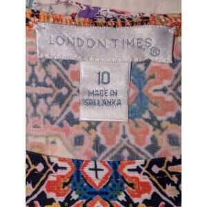 London Times Orange Blue Design 3/4 Sleeve Slip Over Head Dress Womens Size 10