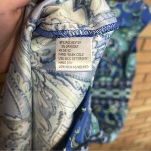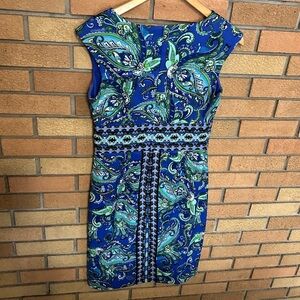 London Times Paisley Floral Shift Dress Sleeveless Knee Length Midi Blue Size 4