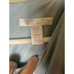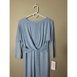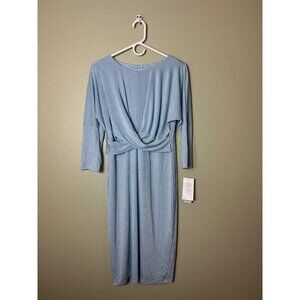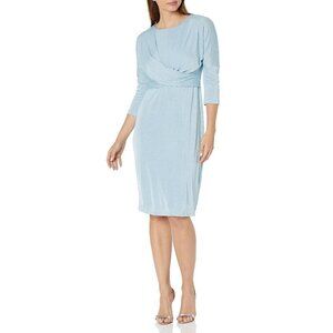 London Times Petite 3/4 Sleeve Criss Cross Waist Dress, Light Blue, Sz. 10P