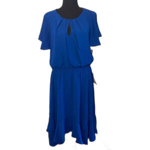 London Times Pleated Keyhole Jewel Neck Elastic Waist Dress. Size 12 NWT
