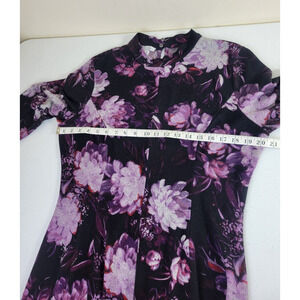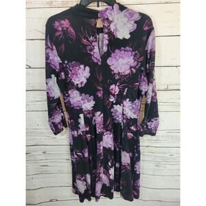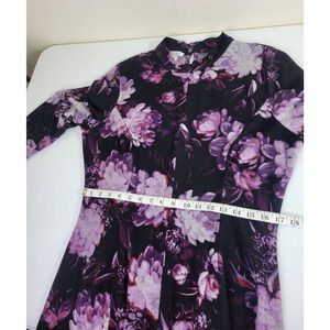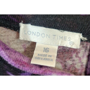London Times Purple Floral Print Long Sleeve Shift Dress Women's Size 16;