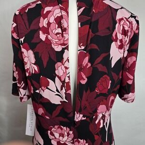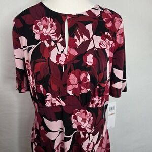 London Times Red Floral Keyhole Midi Dress Women's Size 12 Empire Waist