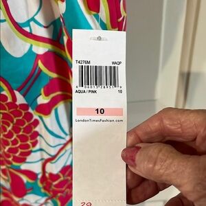 Step into elegance with this London Times sheath dress, featuring a sleeveless design and a crew neck. The vibrant red and blue floral print makes it perfect for a wedding guest or cocktail occasion, while the structured fabric ensures a flattering fit.