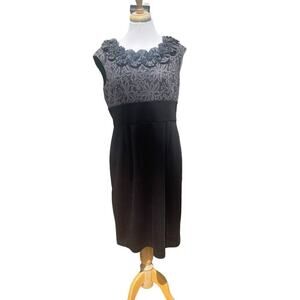 London Times Ruffle-Neck Cap-Sleeve Gray/Black Floral-Top Sheath Dress