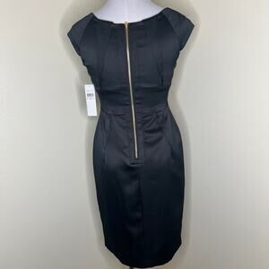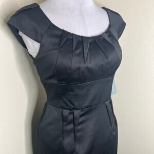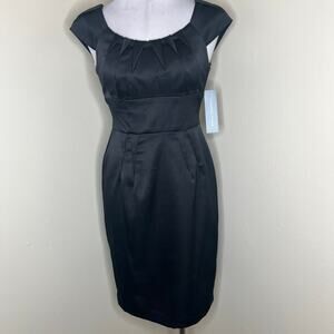 London Times Sheath Dress 6 Black Cap Sleeve Knee Length Work Event Pleated Chic