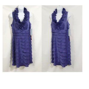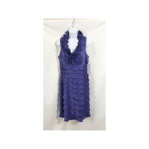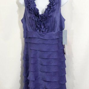 London Times Sheath Dress Size 10 Ruffle Trim Tiered Purple V Neck