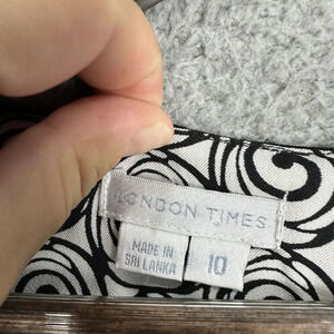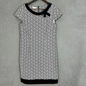London Times Sheath Dress Womens 10 Black Geometric Bow Boho Twee Retro Preppy