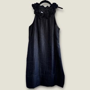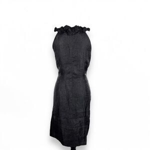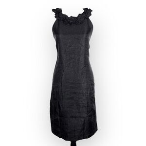London Times Shimmery Black Sheath Dress Ruffle Neck | Size 6