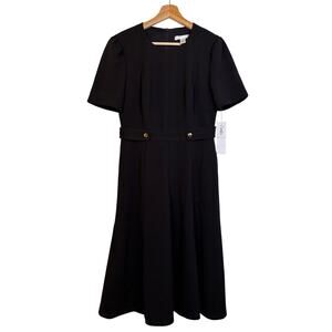 London Times Short Sleeve Fit and Flare Midi Dress Size 6 Taps Minimal Fall NWT