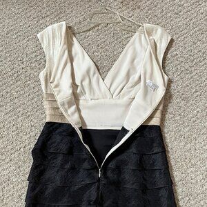 Cream, tan & black shimmery cocktail dress