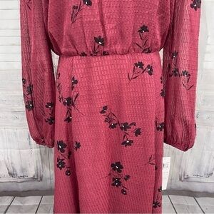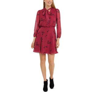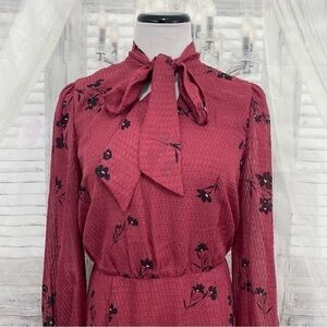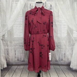 London Times Size 6 Purple Black Floral Tie-Neck Fit & Flare Dress Long Sleeve