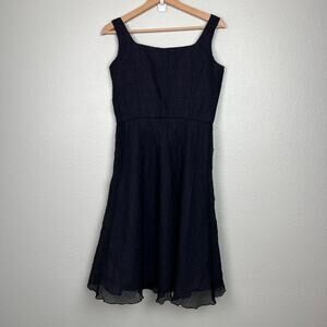 London Times Black Sleeveless Square Neck Tea Length Dress - Size 8