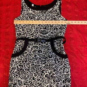 London Times Sleeveless Belted Paisley Black/White Dress with Pockets in Size 8