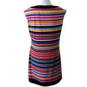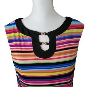 London Times Sleeveless Dress 4p Petite Colorful Stripes Knee Length Stretch