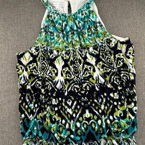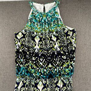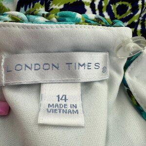 London Times Sleeveless Dress Size 14 Lined Stretchy Braided Neck Multicolor