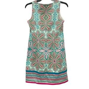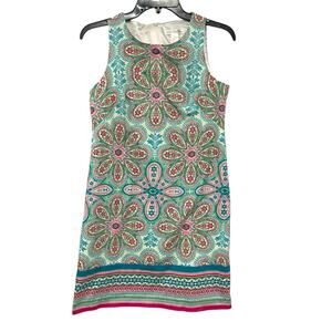 London Times Sleeveless Shift Dress | Green Pink Paisley | Size 4