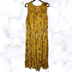 London Times Smocked Waist Yellow Floral Sleeveless Dress 2X