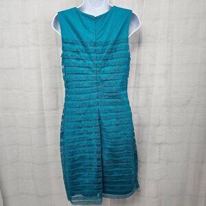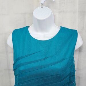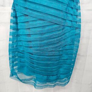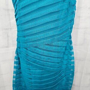 London Times Turquoise Striped Formal Chiffon Sleeveless Dress Size 10