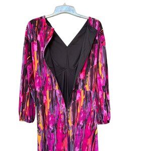 London Times Twist Front Long Sleeve Asymmetric Hem Dress Pink Purple Sz 14