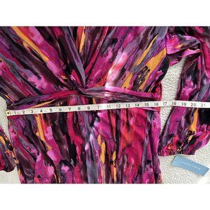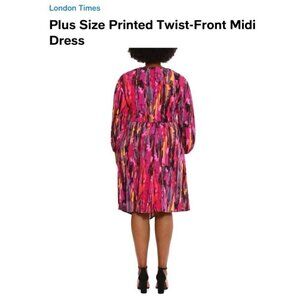 London Times Twisted Front 3/4 Sleeve A-Line Dress Berry Multi Print Size 16
