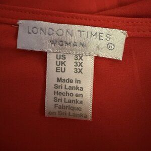 London Times V-Neck Knit Faux Wrap Dess Orange 3X V Neck Office Career Party