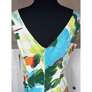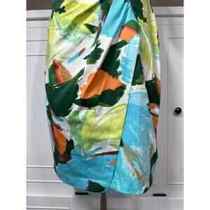 London Times Watercolor Print Ruched Sleeveless Dress Sz 12 Wrap Cotton Colorful