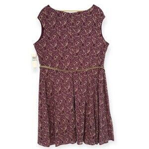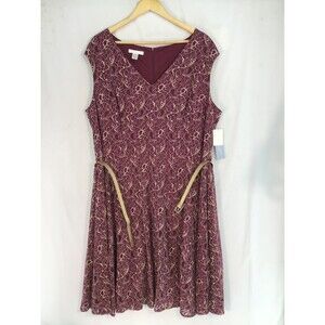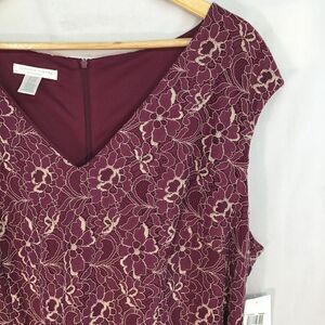 London Times Woman Dress Women's 20W NEW Allover Lace Sleeveless Wine Maroon