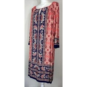 London Times Woman Navy & Peach Paisley Floral Dress Plus Size 20W