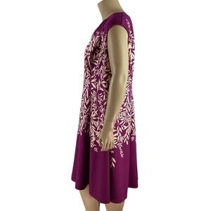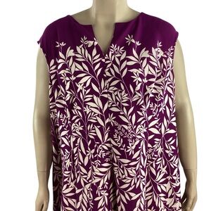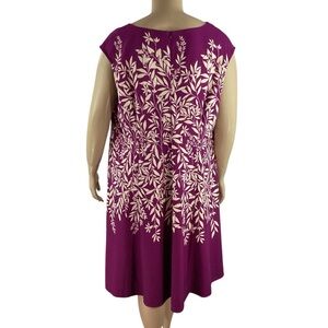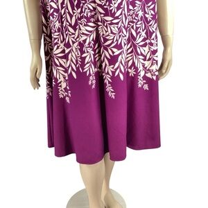 London Times Woman Purple Leaf Print A-Line Dress Size 22W