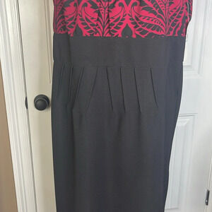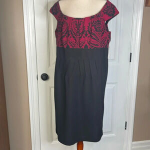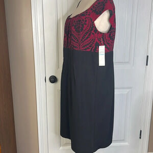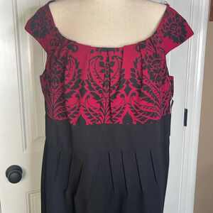 London Times Woman's Red Black Sheath Dress Size 20W Pleated Neck Waist Back Zip