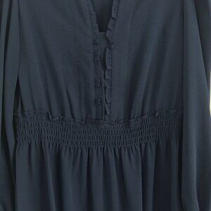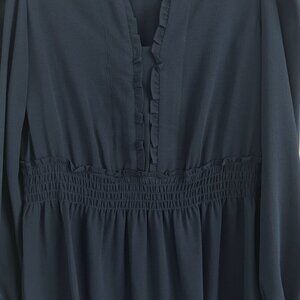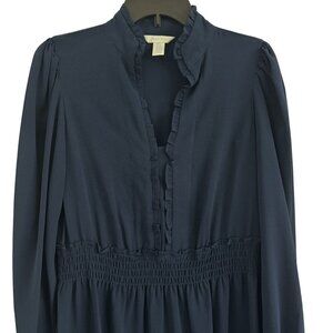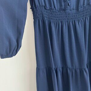 London Times Women Long Sleeve Smocked Waist Ruffled Tiered Dress Size 8
