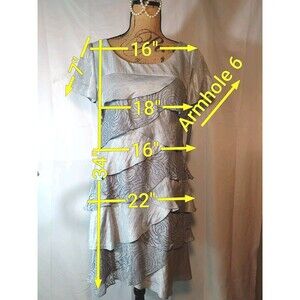 London Times Women Scalloped Silver Floral Dress Size 10P New Measurements in pictures