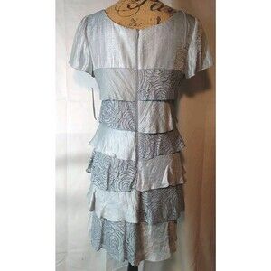 London Times Women Scalloped Silver Floral Dress Size 10P‎