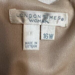 London Times Women's 16W Dress Nude Satin Black Textured Sheath Plus Size Party