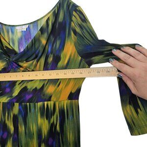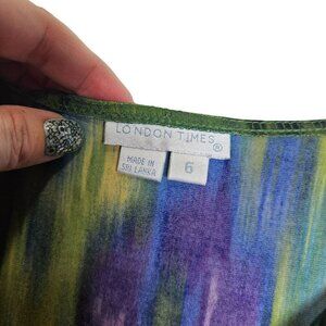 London Times Womens Abstract Multicolor Peacock Cowl Neck Dress 3/4 Sleeve 6